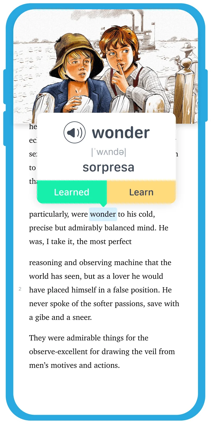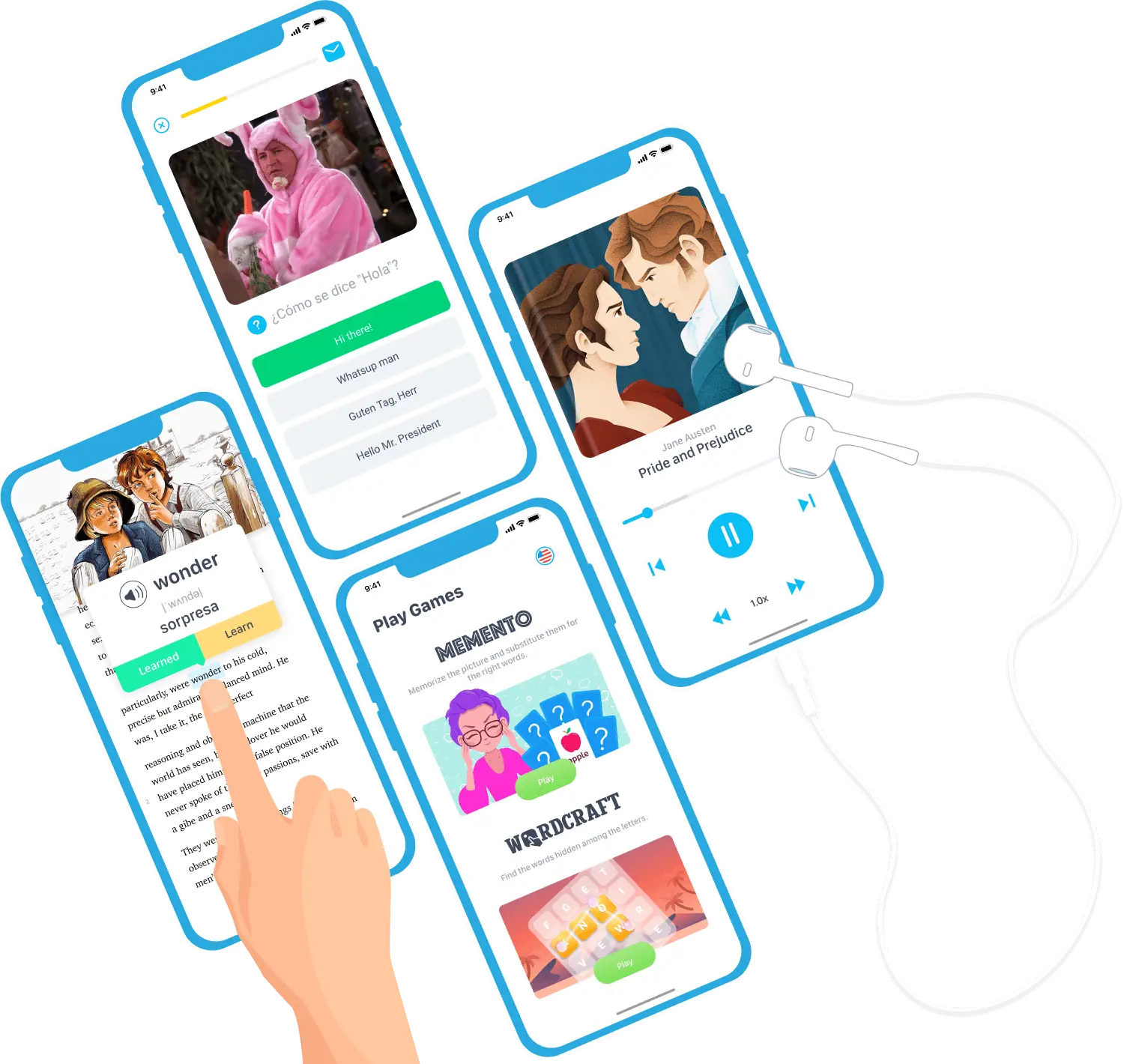 Quickly raise your vocabulary while enjoying reading or listening to your favorite books and audiobooks. A Library of thousands of your beloved books, featuring translation, transcription, and pronunciation of every word is waiting for you.